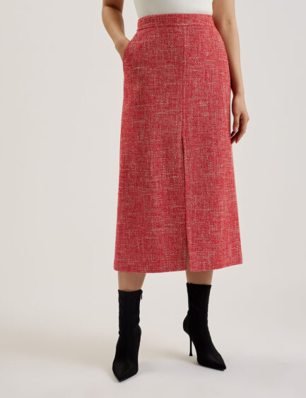 SUMIS – Skräddarsydd Boucle midikjol med slits fram