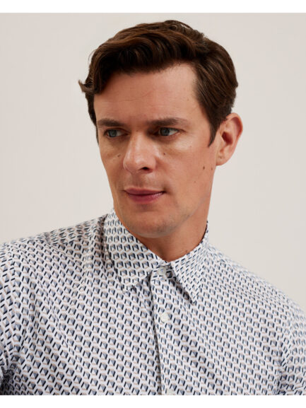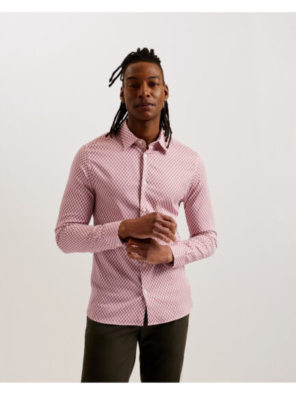 JOSHHY – Slim Fit geometrisk långärmad skjorta