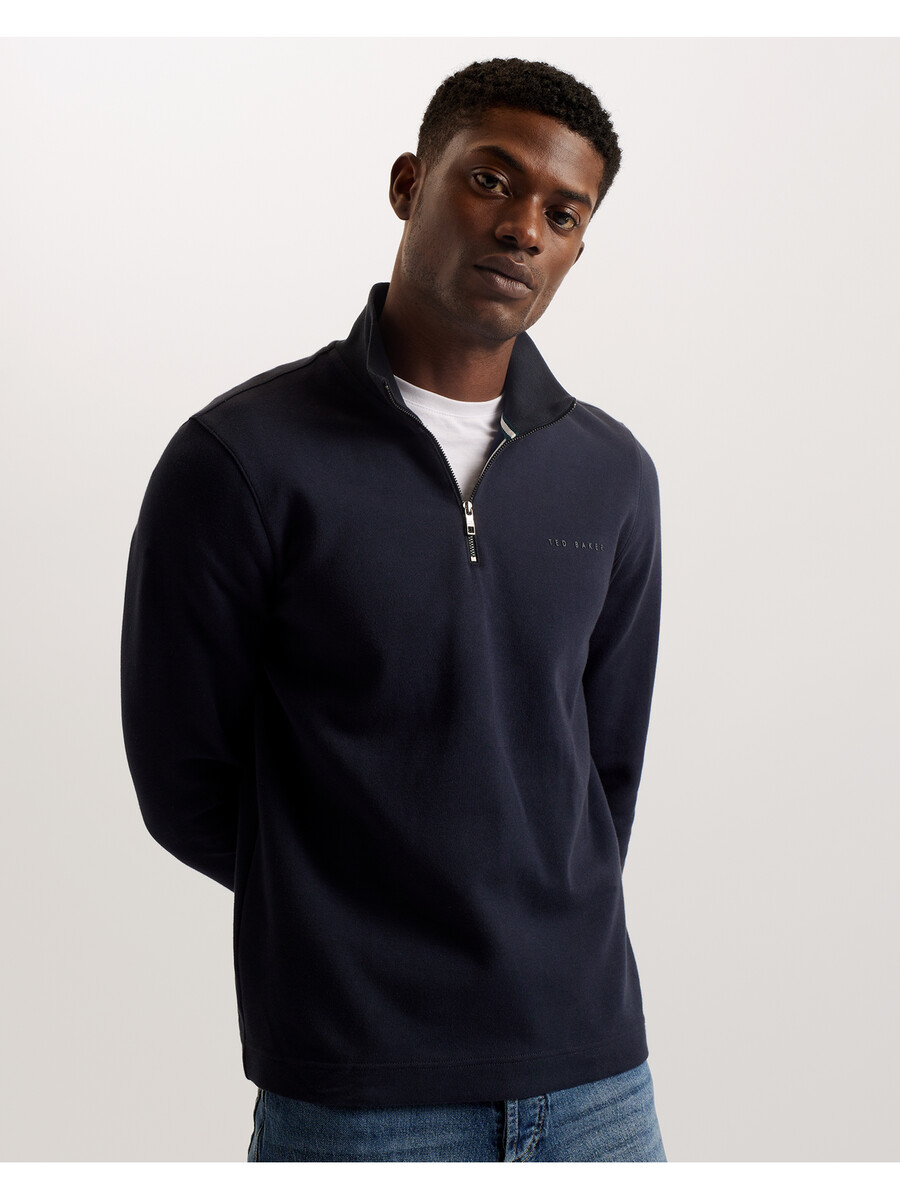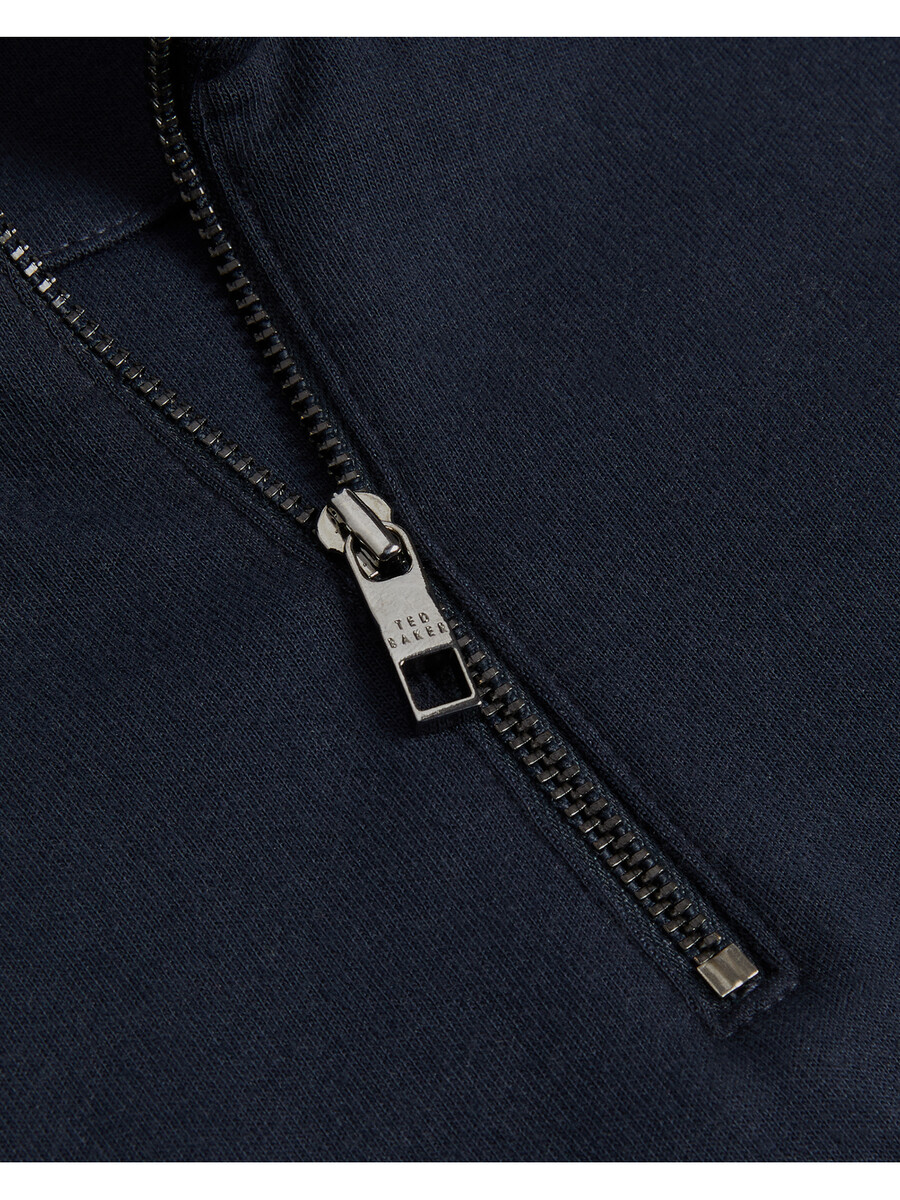Sweatshirt Stretchig bomullsblandning Halv dragkedja. Tratthalsning Präglad logotyp på bröstet Långa ärmar Yahrock är 1,87 m och bär marinblå i en Ted storlek 3 78 % bomull, 13 % polyester, 9 % elastan