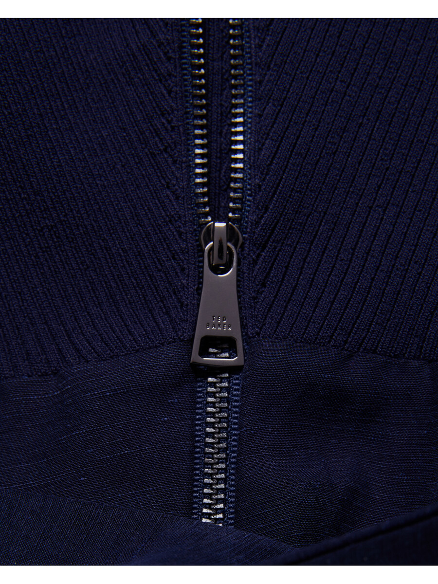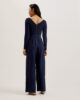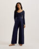 Hånbar jumpsuit Ribbstickad bodice med långa ärmar Off shoulder V-ringning Linneblandning vävda byxor Bred passform för ben Matchande midjebälte Exponerad dragkedja Chae är 1,77 m och bär en Ted storlek 1 Stickad: 66% Viskos, 32% Elastan, 32% Elastan, 32% Elastane; 32% Linne, 29% LyocellHandtvätt 1 prick järn P kemtvätt