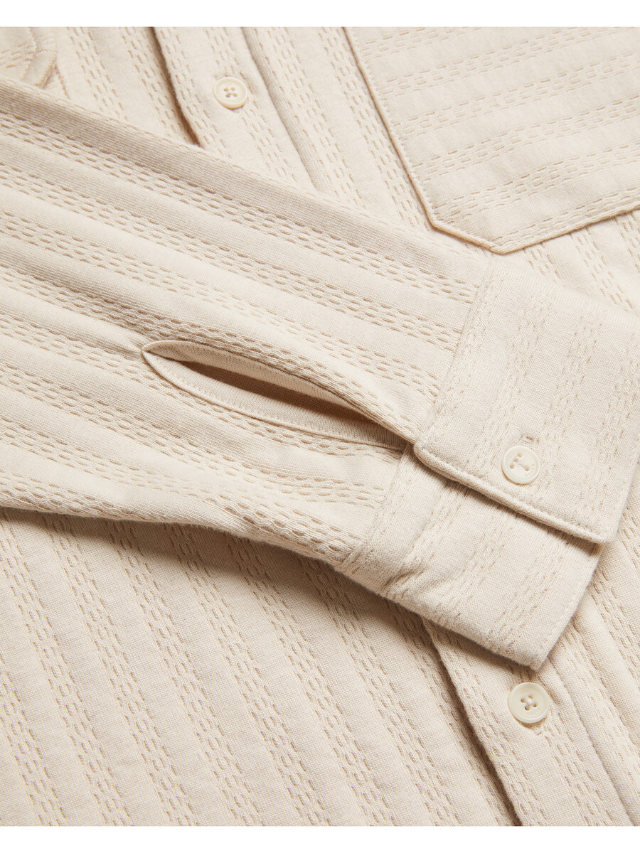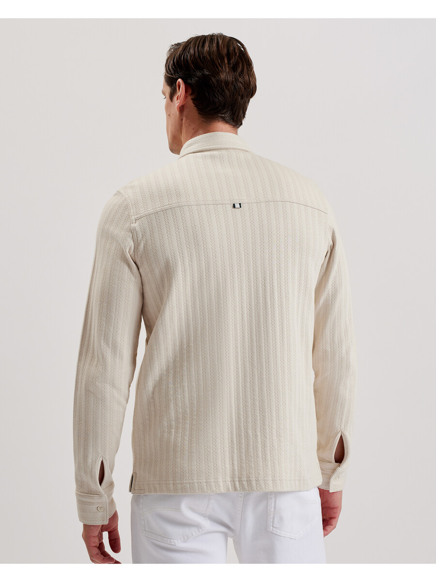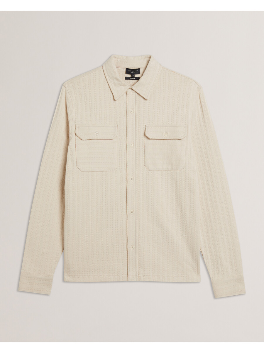 Overshirt Texturerad bomull Två praktiska bröstfickor Knäppning Klassisk krage Regular fit Lewis är 1,88 m och bär beige i en Ted storlek 3 100 % BCI Cotton