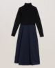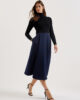 Midiklänning Stickad livdel Tratthalsning Vävd A-linje kjol Omlottstil Gömda framfickor Dold dragkedja Amy är 1,77 m och bär en Ted storlek 1 Stickad: 64 % viskos, 33 % polyamid, 3 % elastan; vävd: 10 % polyester och 10 % polyester; tvätta, kallt stryka, kan kemtvättas