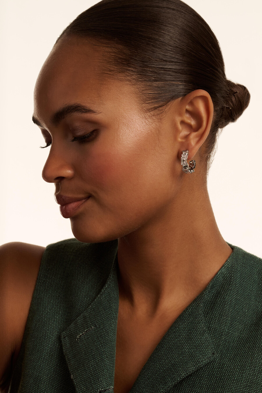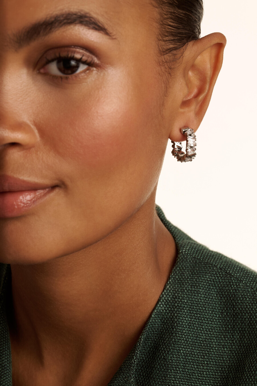 Lägg till en touch av elegans med en modern twist med Ted Bakers Clarence Crystal Cluster Hoop-örhängen. Dessa bågar har en blandning av baguette och runda europeiska kristaller arrangerade i en asymmetrisk design. Färdiga i elegant silverfärgad plätering, de har hypoallergena stolpar och kommer förpackade i en presentförpackning av märket Ted Baker, perfekt för att ge bort eller unna dig själv. • Allergivänliga stolpar och säkra örhängen• Fina europeiska kristaller• Silverfärgad plätering• Presentaskförpackning• Matchande föremål tillgängliga 68 % mässing, 30 % kristall, 2 % rostfritt stål, 100 % silverfärgad plätering. Sätt alltid dina Ted Baker-smycken på som pricken över i efter varje parfym. Håll borta från vatten, solkräm, lotioner, handdesinfektionsmedel och andra kemikalier som klor. För att rengöra rekommenderar vi att du endast använder en mjuk trasa – alla kemikalier eller polervätskor kommer att slita bort plätering. Smycken bör noggrant förvaras i den medföljande förpackningen. Kom alltid ihåg: Det ska vara det sista du tar på dig på morgonen, och det första du tar av dig på kvällen.