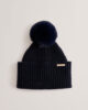 Bobble-mössa Chunky ribbad stickad Fuskpäls bobble Beanie-stil Uppvikt ände Märkesplack 47 % akryl, 33 % polyester, 20 % nylonMjuk maskintvätt i 40°C, får inte strykas eller kemtvättas