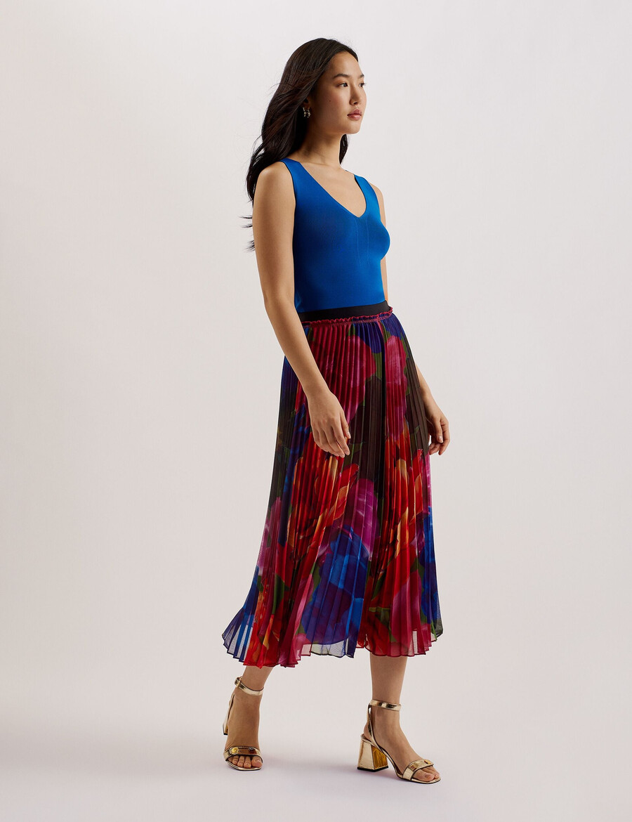 EVOLA – Tryckt plisserad midikjol