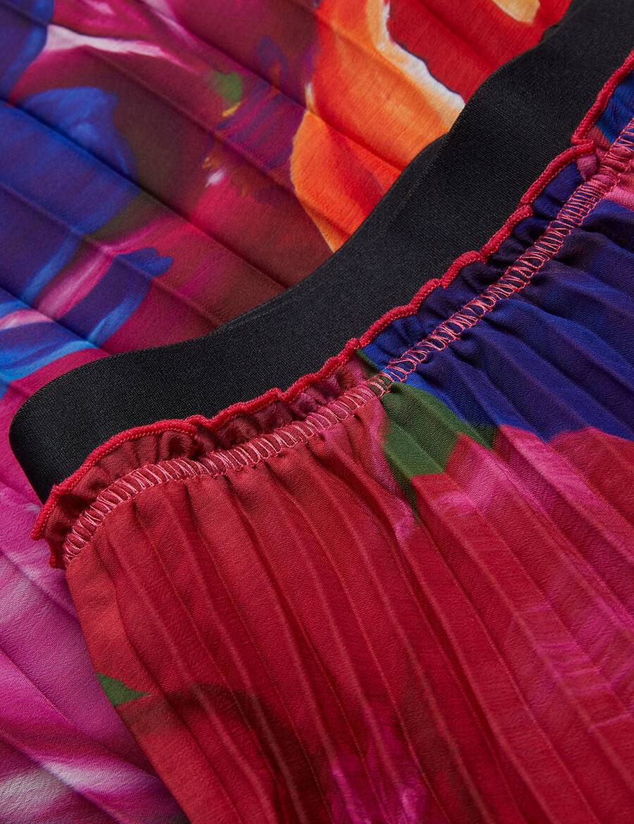 Gör ett statement med EVOLA, vår veckade midikjol, där djärvhet möter elegans. Med ett slående överdimensionerat blommönster är den här kjolen en hyllning till livlig stil och enkel grace. Vecken lägger till en touch av rörelse, vilket gör varje steg till en stilig blomstring. Perfekt för de dagar då du vill vända på huvudet och känna dig fantastisk, den här kjolen kombinerar dramatisk stil med raffinerad sofistikering. – Veckad detalj – Midi längd – Vävt tyg – Blommönster 100 % polyester 30°C tvätt; 1 prick järn; kemtvätt inte
