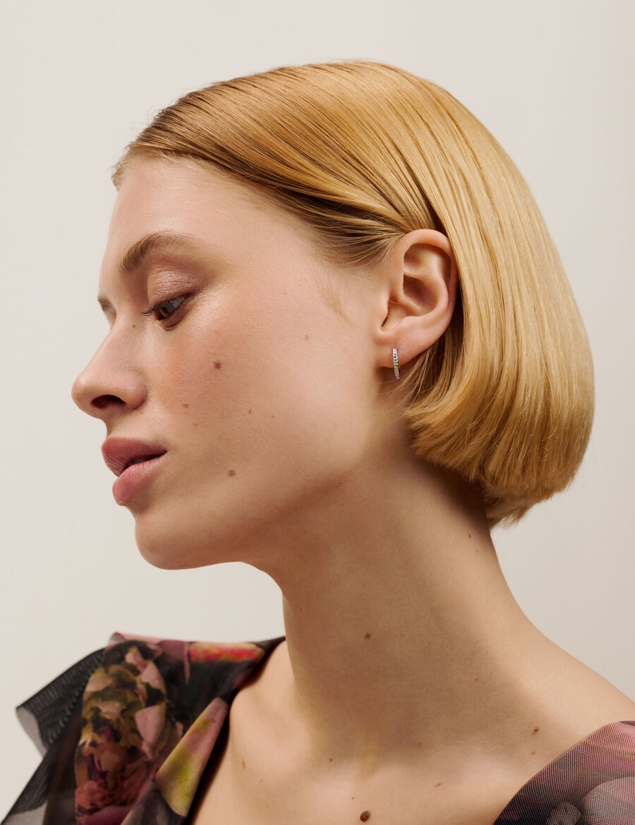 Huggie hoop örhängen Pavé pastell regnbågskristaller Tunn design Silverton plätering Gångjärnsförslutning Diameter: 14mm Levereras i en märkesförpackning Observera: örhängen kan inte returneras på grund av hygienskäl 85% Mässing, 15% Kristall, 100% Silver Tone PlatingBär dina Ted sprayer parfymer eller smycken. Undvik vatten och kemikalier. Rengör med en mjuk trasa och förvara i förpackningen.
