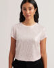 Kortärmad t-shirt Metalliska vävda ränder Ribbstickat tyg med stretch med rund hals Broderad logotypdetalj Slim fit May är 1,74 m och bär ljusrosa i en Ted storlek 1 93 % polyester, 7 % elastan