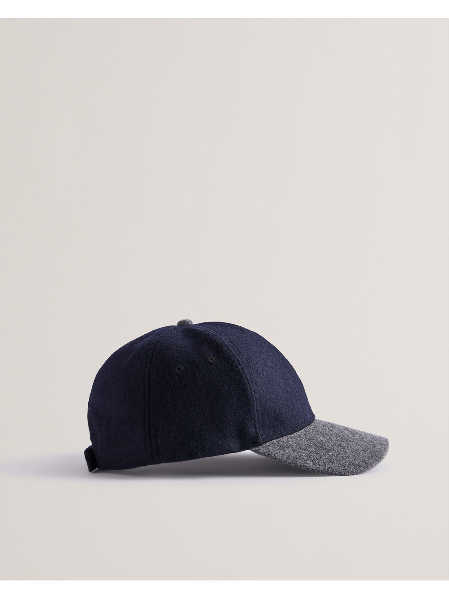 Ylleblandning tvåfärgad baseballkeps Justerbar rem med kardborreband Broderad logotyp på bakremmen Skal: 63 % ull, 25 % polyester, 5 % polyamid, 3 % viskos, 2 % bomull, 2 % akryl; Foder: 100% bomull; Svettband: 100% bomull. Ingen tvätt utan strykning, ingen kemtvätt