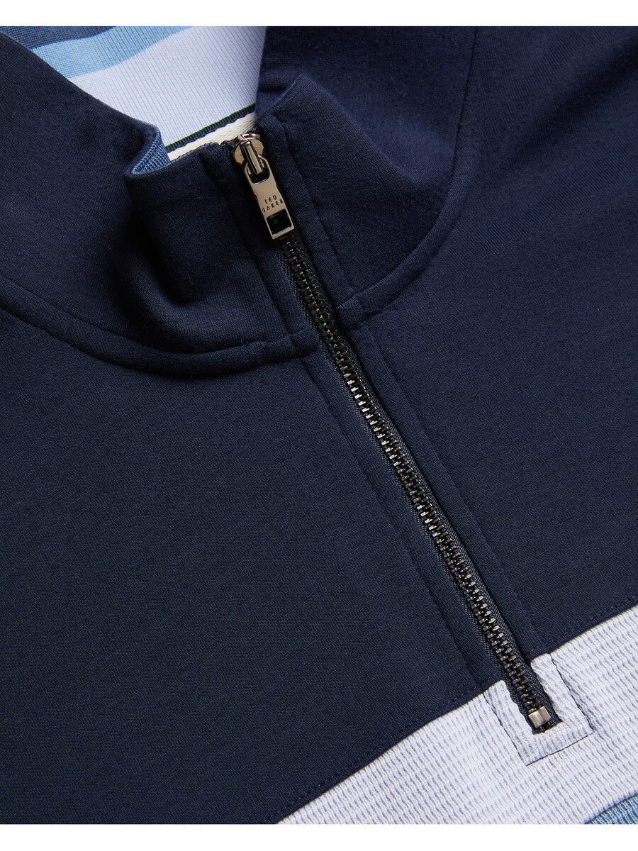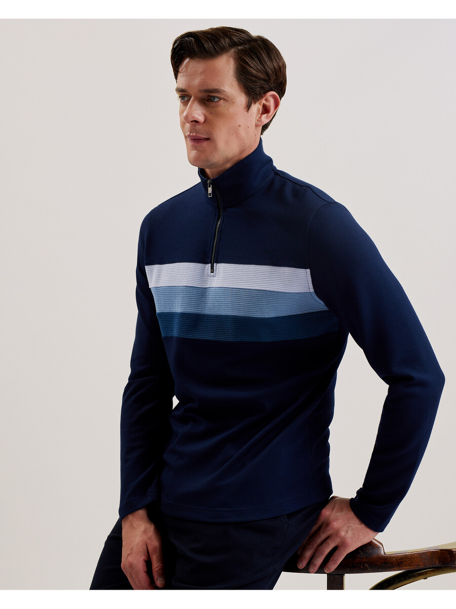 Sweatshirt Ombre randig panel Halv dragkedja Tratthals Mjuk modalblandning Långärmad Lewis är 1,88 m lång och bär marinblå i en Ted storlek 3 49 % polyester, 47 % modal, 4 % elastan