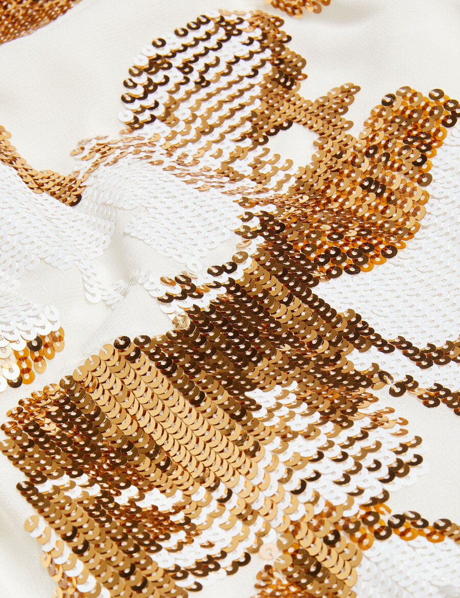 Miniklänning Dragkedja i sidan V-ringad All-over blommig paljett-utsmyckning Rak fåll Medelvikt, icke-stretch 100 % polyester Endast kemtvätt