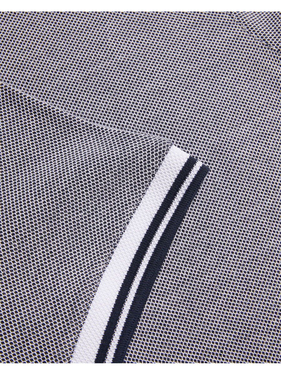 Kortärmad pikétröja Honeycomb textur 100 % bomull Klassisk krage Halvknappslå Randiga stickade kantdetaljer Delad fåll detalj Lewis är 1,88 m och bär marinblå i Ted storlek 3 100 % bomull