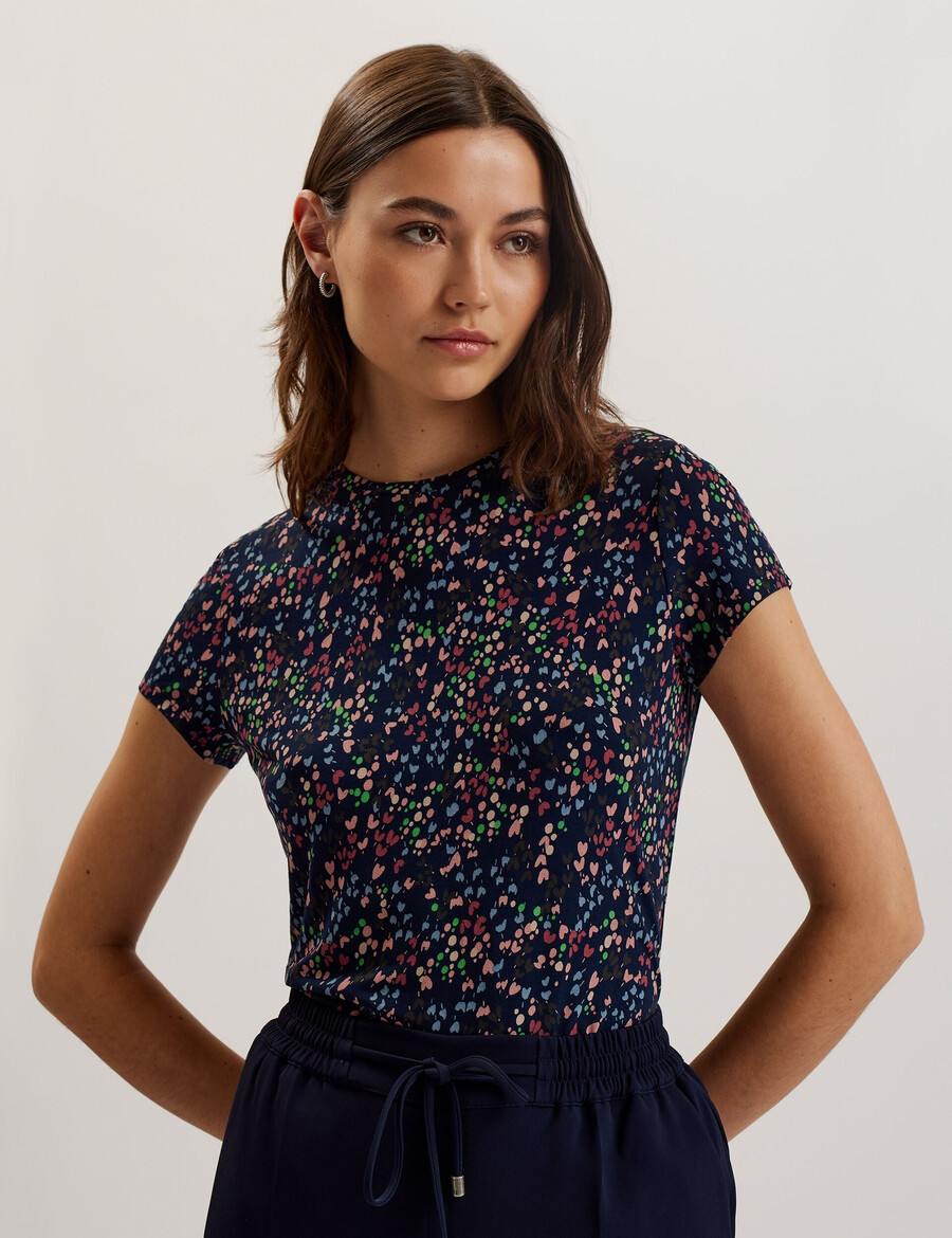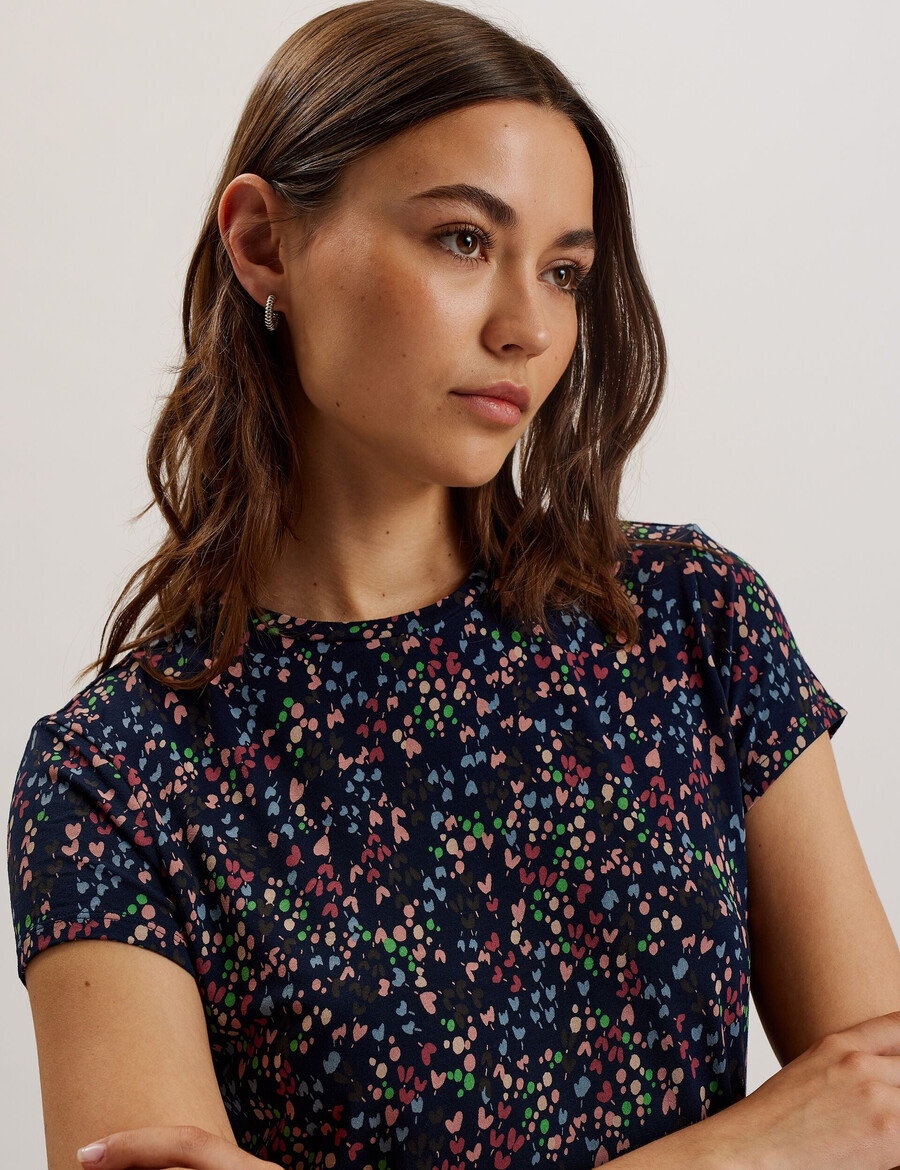 Kortärmad Fitted Heart print Rak fåll