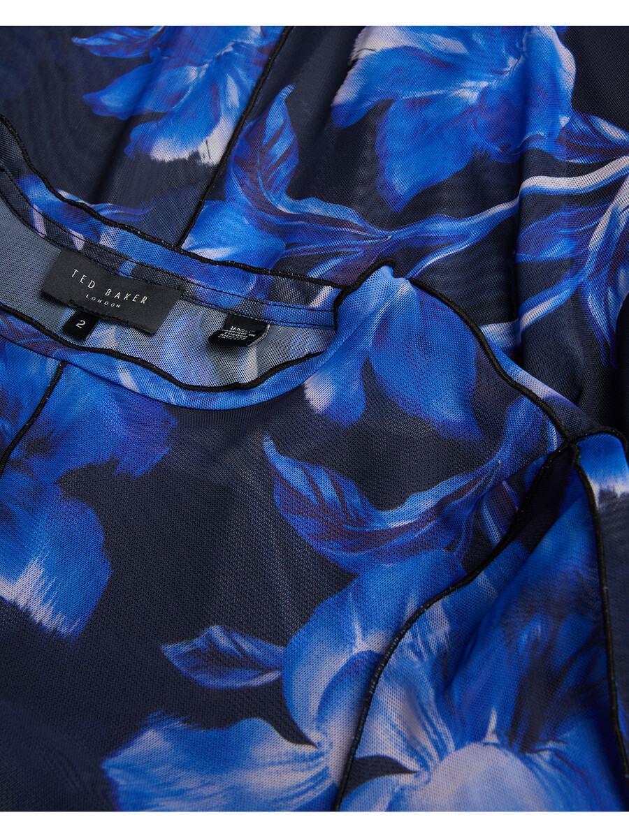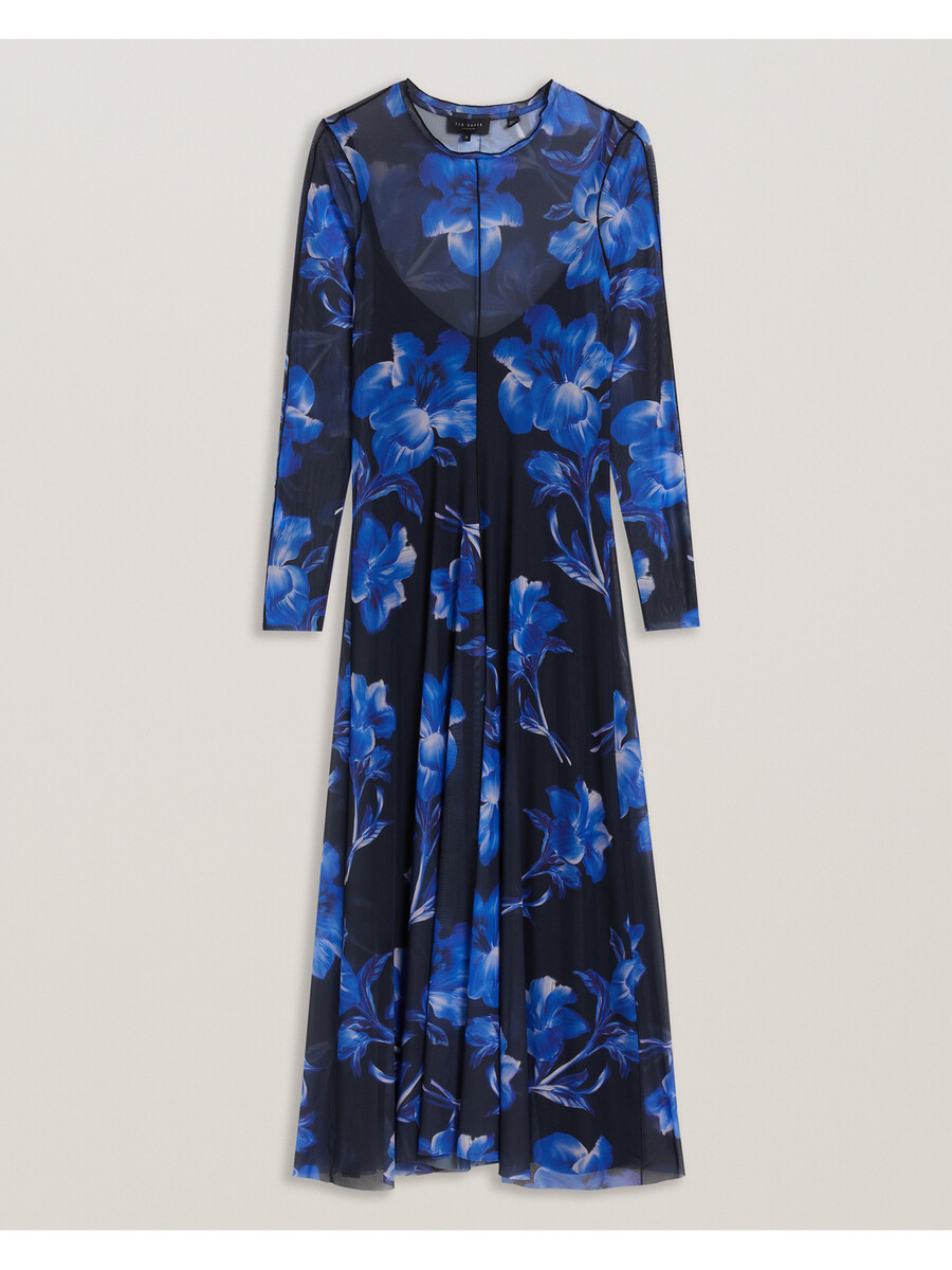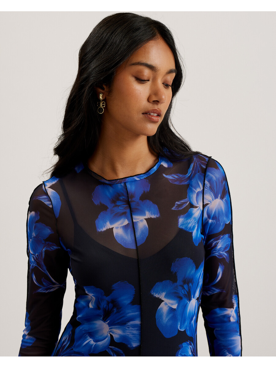 • Långärmad • Blommönster• Meshtyg• Fodrat livstycke• A-linje kjol 95 % Återvunnen polyester 5 % Elastan Delikat maskintvätt i 30C, använd inte produkter som innehåller blekmedel, torktumla inte, stryk inte, kemtvätt inte, se till att undvika att fastna