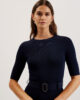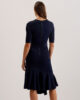 Bodycon midiklänning Stickat tyg med stretch Asymmetrisk flippy-fåll Halvlånga ärmar Rund hals Fäst skärp med metallring Exponerad dragkedja Amy är 1,77 m och bär Mörkblått i Ted storlek 1 67% Viskos, 31% Polyamid, 30 grader torrt järn, torrt järn, 30 grader torrt järn.