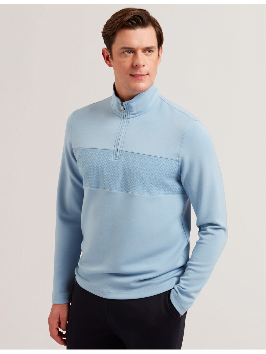 Pullover sweatshirt Texturerat T-mönster på bröstpanelen Kvarts dragkedja Tratthals Mjuk modalblandning Långärmad Normal passform Lewis är 1,88 m och i Ted storlek 3 49% polyester, 46% modal, 5% elastan30°C synthtvätt 2 pricksjärn utan kemtvätt